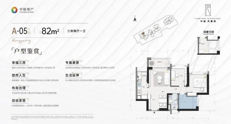 A栋产品:约82-120㎡三房至四房,三梯五户