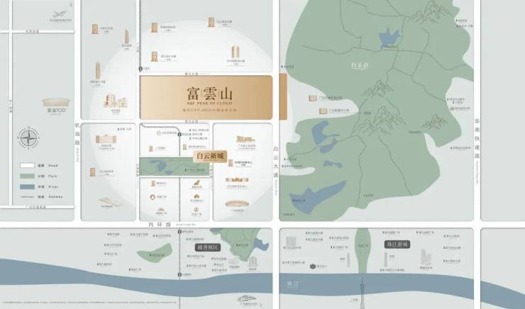 千亿配套,豪宅大城:项目约200万㎡,涵盖10大住宅组团+5大商业组团+2大教育组团+1山景中央会所+1社区花园,自成一城,浓缩最顶尖的生活圈。5-10分钟内即享白云国际会议中心、广州体育馆、广东画院、广州市儿童公园、广东外语外贸大学、广外附小、广东省实验中学、培英中学、广东省人民医院、南方医科大学南方医院,最优质省市级资源环绕。