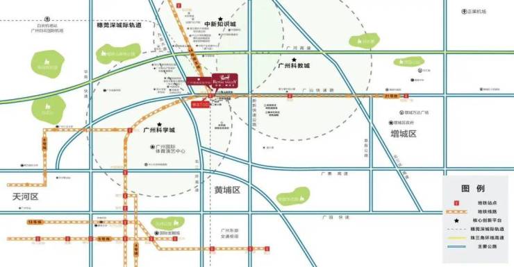 ● 广州地铁:真地铁上盖,距离中新站200米,镇龙站(快线站)2000米