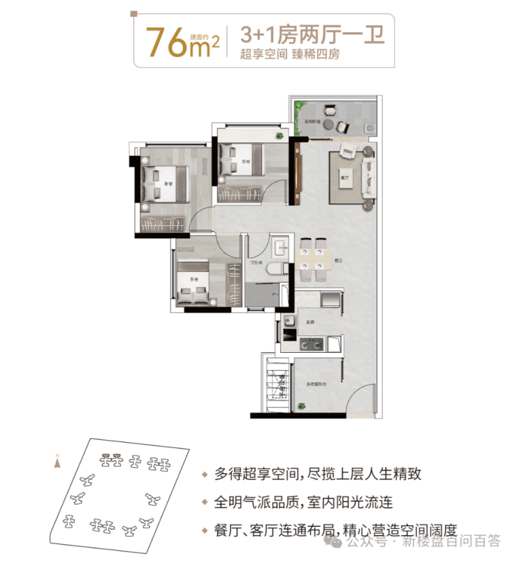 ✅同等面积多一空间,76-88㎡3+1房、119㎡4+1房,140㎡臻5房,194㎡5房3套间