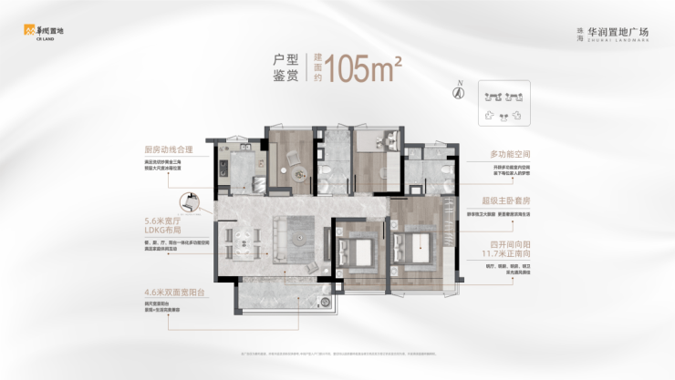 四开间正南向朝阳 · 5.6米LDKG宽厅布局 · 超级主卧套房