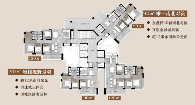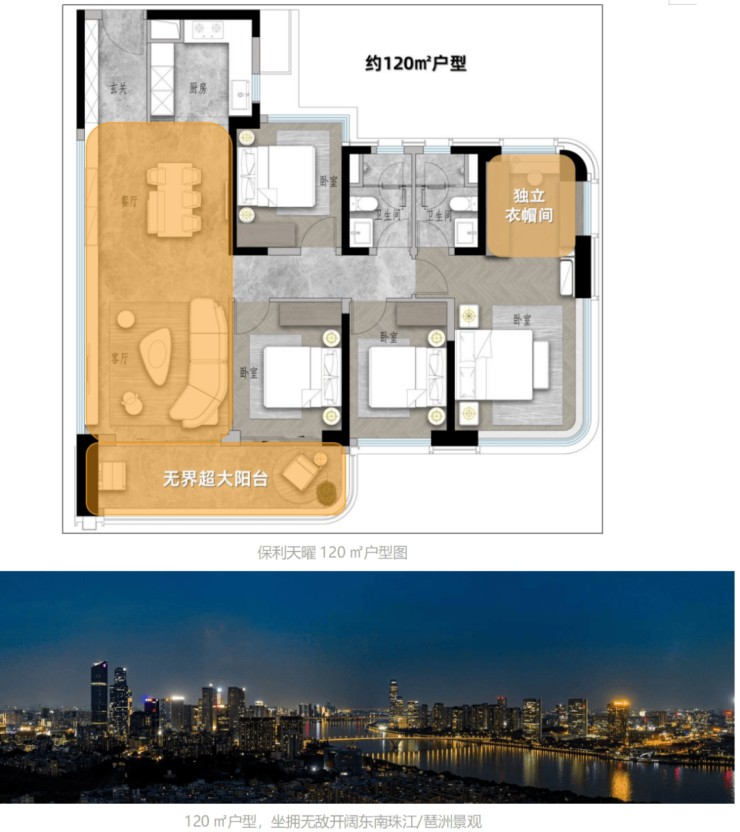 作为珠江新城首个同尺度下做到四房两卫的产品,120㎡户型拥有女王级独立衣帽间、约6.7米双面宽阳台、环幕瞰景窗等珠城稀缺的产品亮点,随着报建规则逐日缩紧,这样的户型以后很难再次出现。