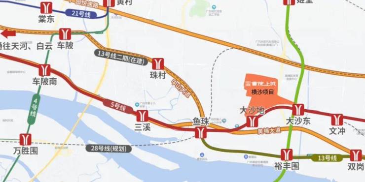 地铁交通方面,距离5号线大沙地站约800米,2站天河,0换乘达珠江新城;近享在建7号线大沙东站以及13号线裕丰围站,未来三条地铁交汇,轻松贯通广州东西南北。