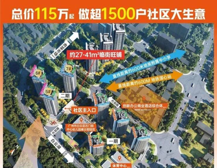 👉绝佳地段 :白云湖主城,社区主入口,一路之隔正对幼儿园,客流集中,不易流失