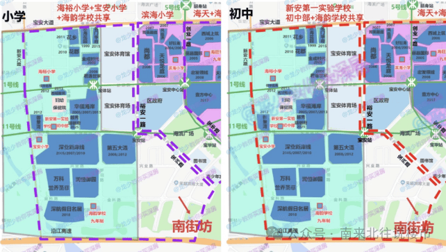 根据2025年宝安区教育局最新的学区划分,小学学区划分在海韵学校,海裕小学,宝安小学;中学学区划分在:新安中学第一实验学校,海韵学校。