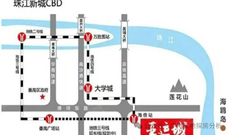 项目临近地铁4号线海傍站,可直达琶洲、天河;3号线东延线(预计2025年通车)将进一步缩短与珠江新城的通勤距离。此外,周边有亚运大道、新化快速等多条主干道,自驾出行便捷,未来规划中的8号线南延段、广中珠澳高铁等将进一步提升区域交通价值。