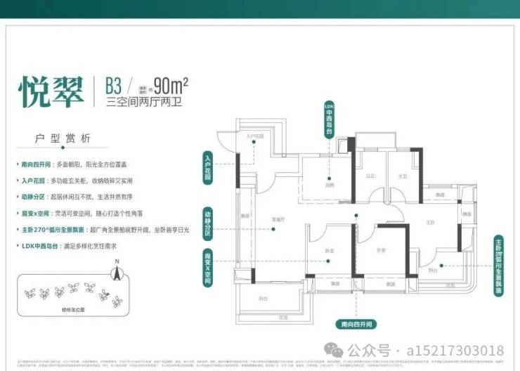 悦翠建面约90㎡/三空间两厅两卫