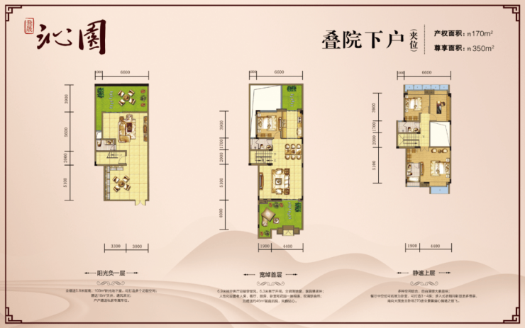 上叠院:产权面积170/223方,顶层有个超大的多功能空中花园,可聚会、休闲、赏月、品酒、烧烤、种花草…