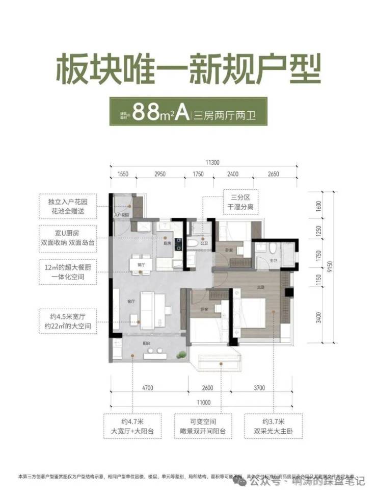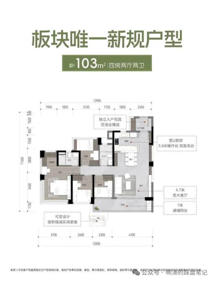1)独立入户花园,4.7米宽大客厅,7米通铺阳台