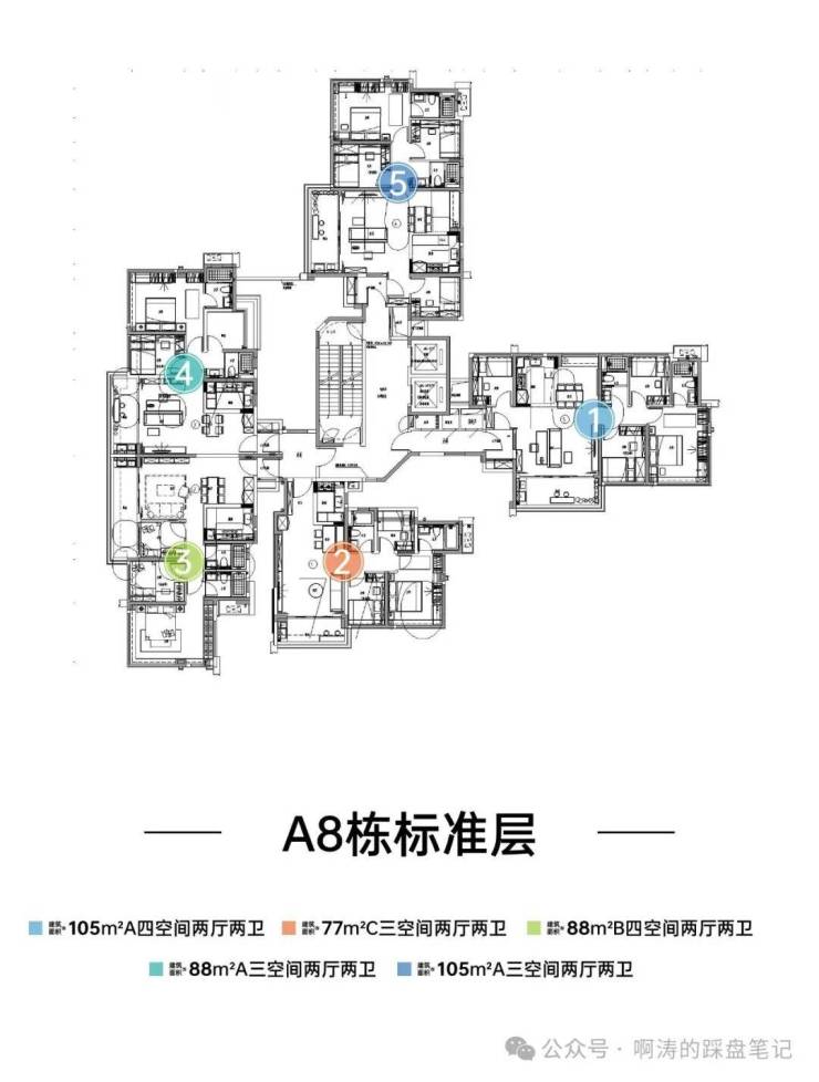 A1栋在售产品(33层约100米2梯5户):