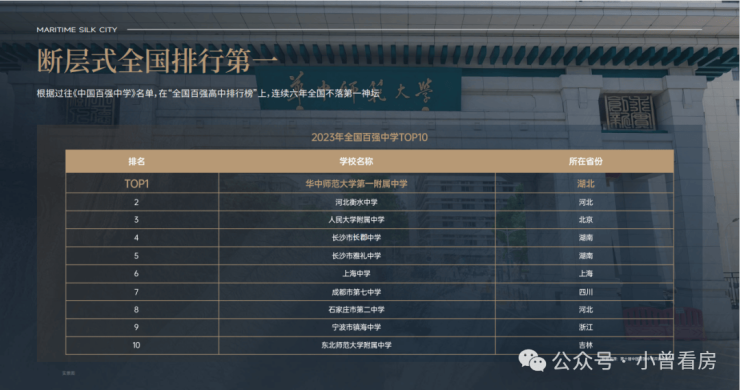 1、引入华中师大教育集团办学,学校连续六年排名全国第一,清北摇篮 (广州第一的华师附仅排名第十五),近100%一本升学率