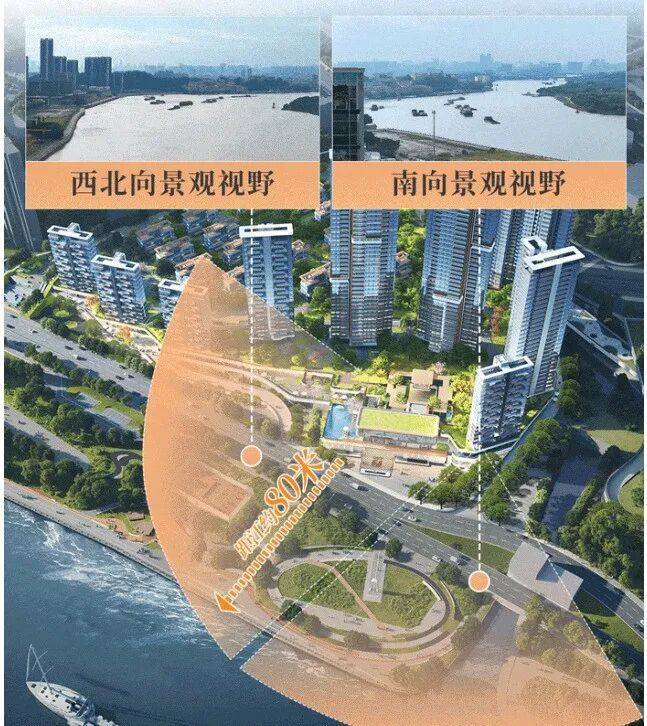 江玥上城所在地块,距离江的距离,最短距离仅约80米!