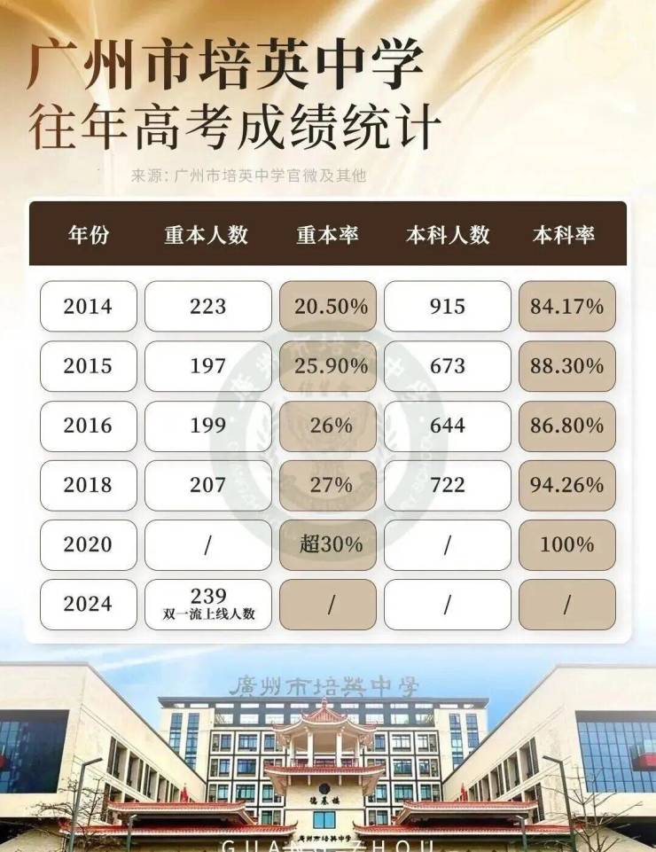 早在2024年,培英的高考特控增长率已经位居广州第一,本科上线率更是连续五年超过90%