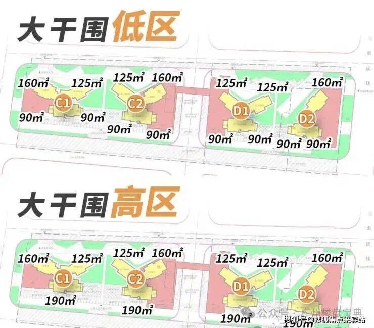 低区3-23楼,2梯4户,面积段有90、120、160平三个面积段。