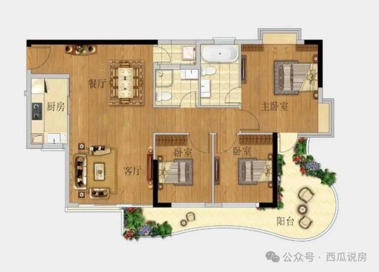 🅣🅞🅟02户型【95㎡3房2卫】东南向望江