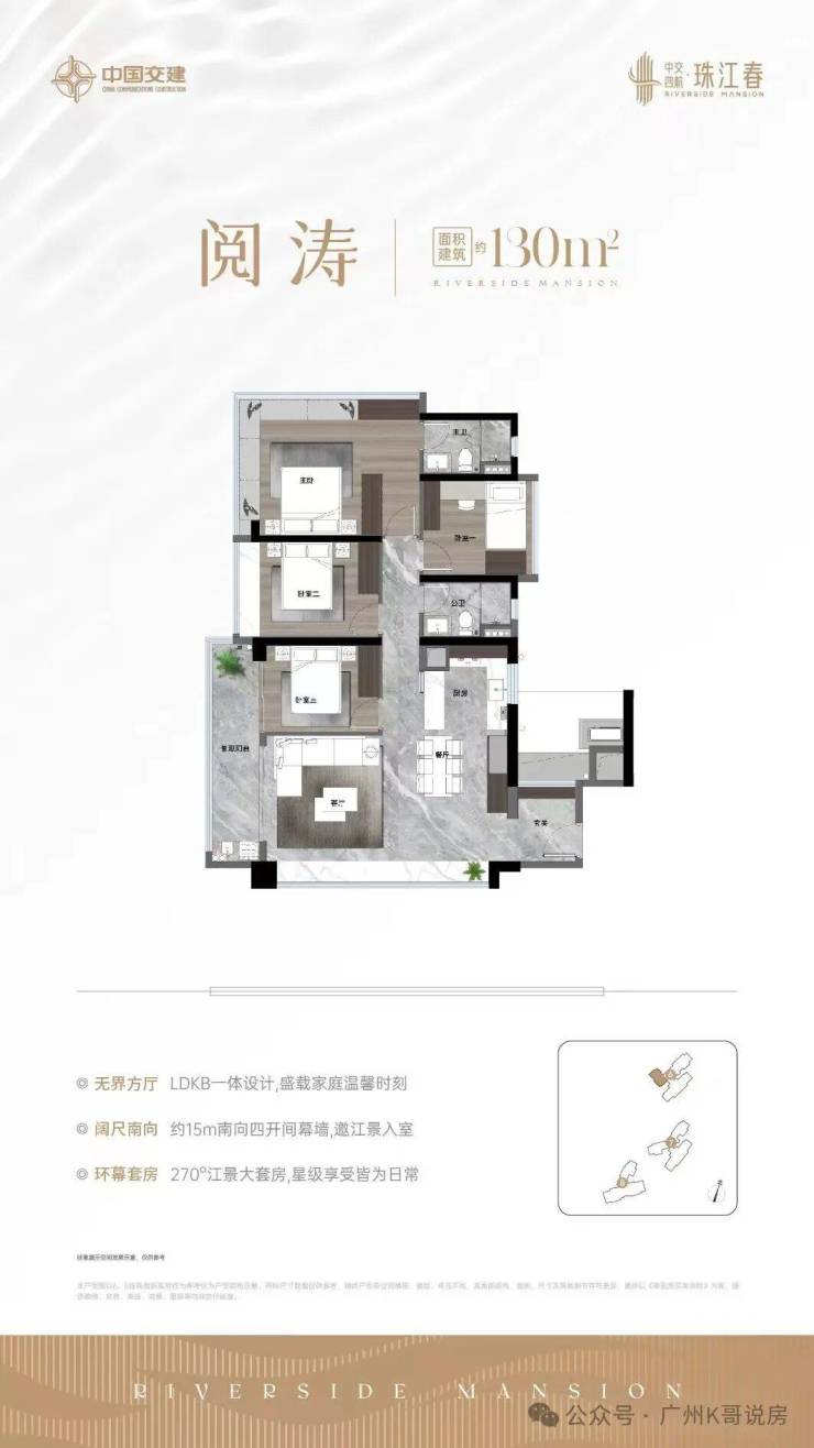 建面约143平,星级酒店式主套做到三面采光,面积达约28平!