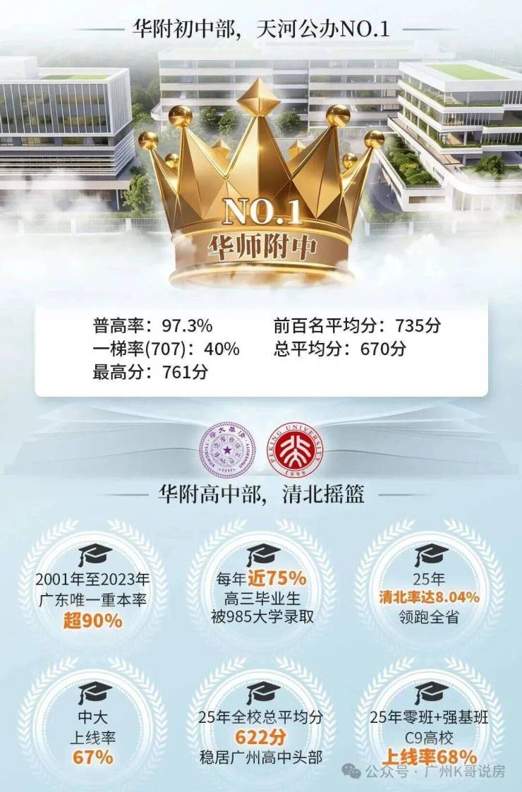 零班+强基班C9高校(包括清北、复旦、上海交大、南京大学、浙大、中科大、哈工大、西安交大)上线率68%,更是雄踞广州之首。