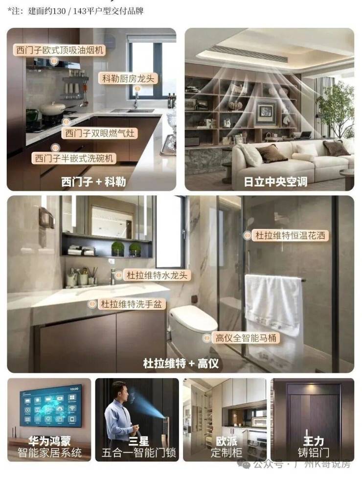 装标也是全面升级,国际奢牌西门子厨电三件套(燃气灶、欧式顶吸油烟机、半嵌式洗碗机)、厨房凉霸、三星五合一智能门锁、高仪全智能马桶;