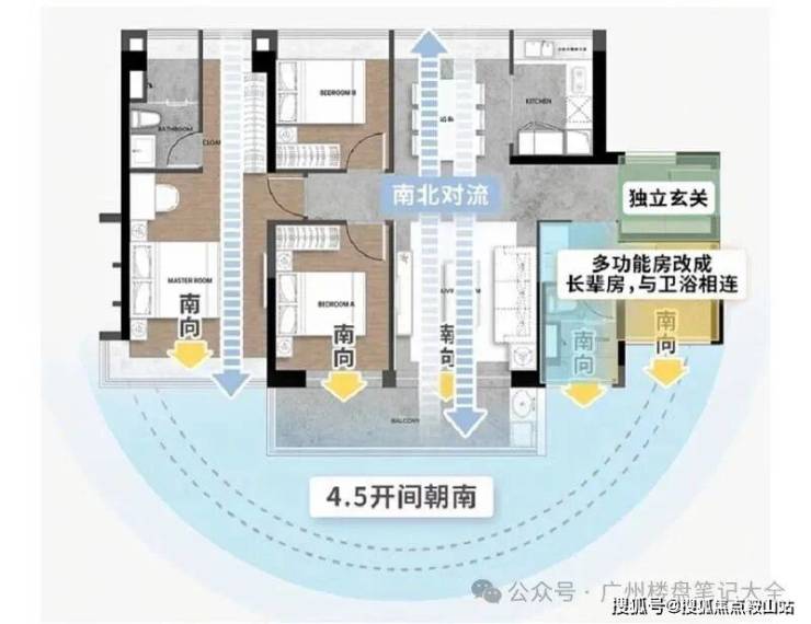 整体价值:约46㎡客餐厨空间+约26㎡南北对流主卧套房+4开间朝南+约14.5米南向采光面