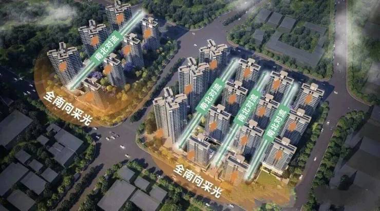 极致的低密,又可以让其布局2T2的板式小高层,实现南北通透对流,全明采光,户户居住舒适度平权。