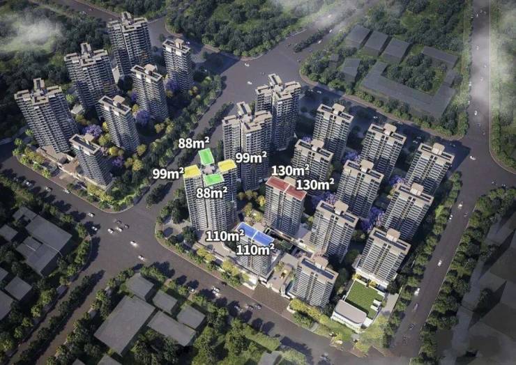 塔楼2T4设计,主打88、99平户型。