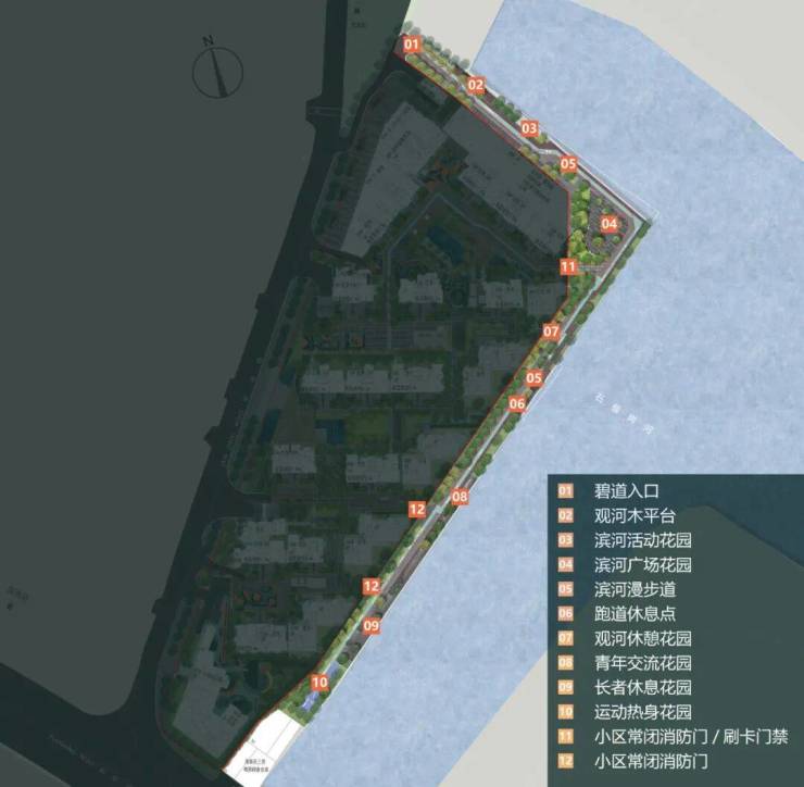 为保护并突出江河自然景观,设计避免大规模的开发与建设,考虑“景观再造、功能补入、景观延伸”,打造全新的共享生态滨水社区。