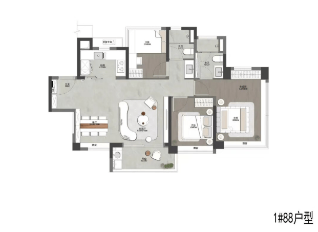 LDKG一体化大空间,无承重墙设计,可伴随家庭周期成长改造,家人共融,宴请宾客,足够阔绰。
