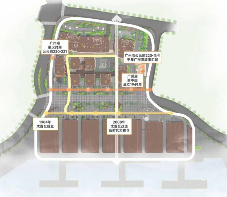 太古仓壹号项目在太古仓一期成功经验的基础上,紧扣“千年广州港·百年太古仓”的主题核心,从规划结构、空间肌理、建筑风格等层面多维度改造升级,将太古仓码头现有滨水元素、港口元素和洋行元素进一步拓深拓宽,升级打造为广州“城市客厅”。