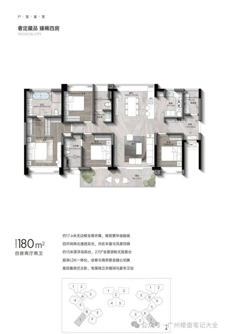 卖点四、交通价值:私家连廊直通地铁13号线二期棠下站(在建,23年底通车),3站抵达金融城交通枢纽(科韵路地铁站),实现10分钟南站、20分钟机场,另设值机大厅;3+4+5(中山大道丨黄埔大道丨科韵路+广州环城高速丨华南快速干线丨广园快速路丨南沙港快速+4号线丨5号线丨11号线丨13号线丨21号线)超级交通枢纽,实现1小时广州生活圈;