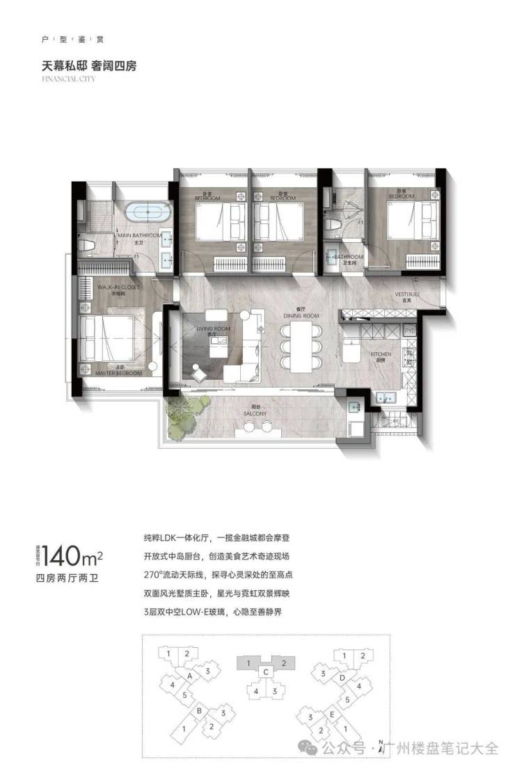 卖点三、工匠价值:时代的孤品,天河的限藏,125-180㎡稀缺/灵活户型,南向花园景观最大化,水晶般立面设计,整体风格,科技时尚简约,品牌系统窗打造,整体视觉效果更舒适,超前端的外立面材料,归家仪式感满分;