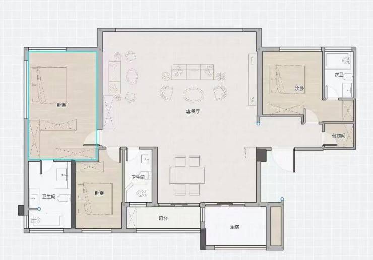 133㎡大平层,四叶草+横厅设计在广州独一无二,客厅甚至不需要打通,就能实现约7.4米大宽厅,媲美170㎡大平层。