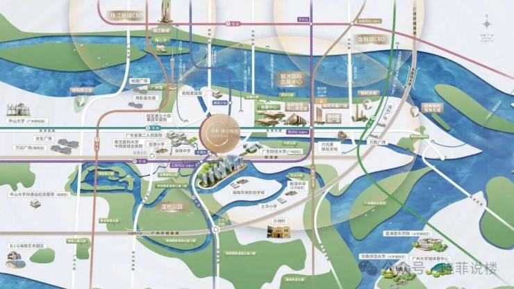 除湿地公园外,项目3公里范围内还有海珠湖公园、瀛洲生态园、广州国际生物岛,四个公园犹如四扇“翡翠屏风”串联一体,十里云水,世界唯一。
