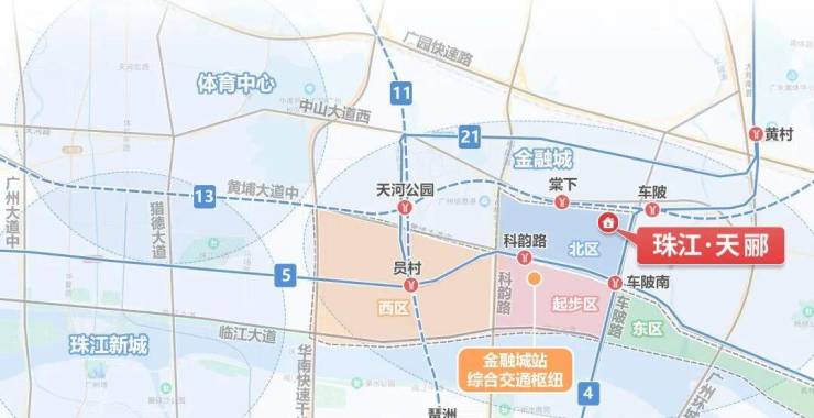 驾车出行有中山大道西、黄埔大道中,未来还有新滘东路隧道直达琶洲,从交通路网来看,珠江新城、金融城、琶洲这三个板块链接的非常紧密,出行非常便捷。