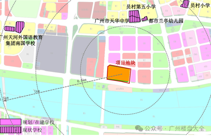 5、配套完善,配建幼儿园、5000㎡商业,周边3km内有K11、天汇广场等商业,5km内有广州图书馆、广东省博物馆等文化设施。