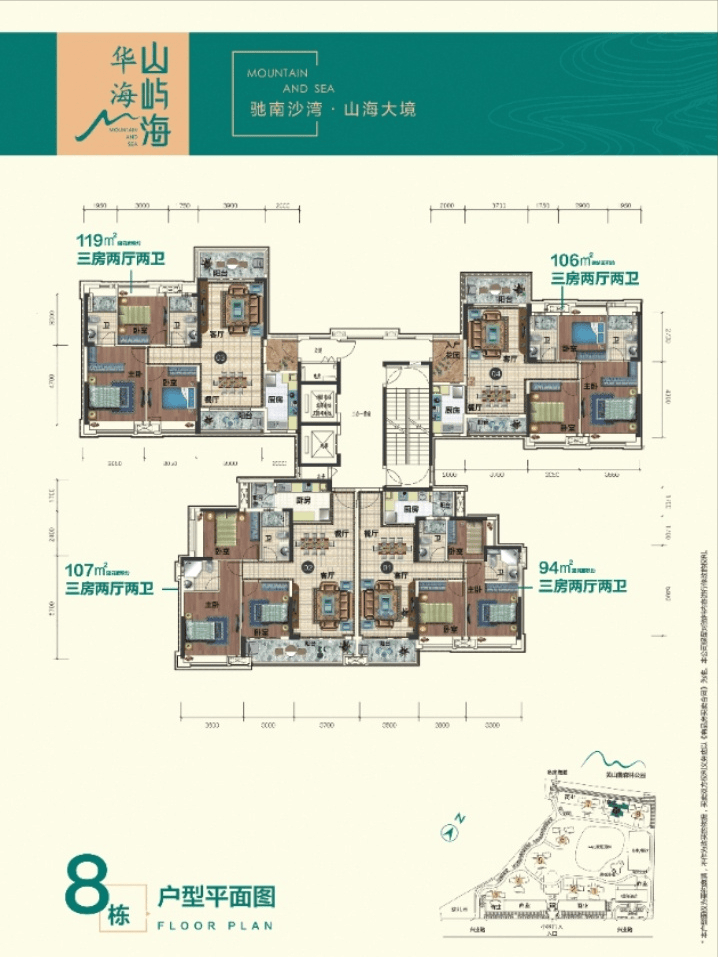 围合式布局,最大楼间距超260米,畅享内外三景(园景,山景,海景)