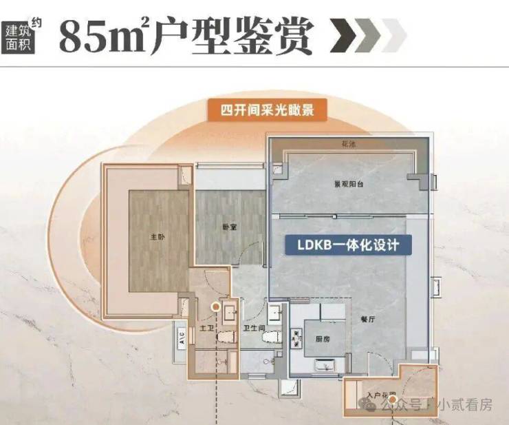 傲璟贴心地保留了多个小面积段,如建面约74㎡、85㎡、95㎡,两至三房的户型设计,都有入户花园、LDKB、大阳台等,可布置归家仪式感玄关、去中心化的超大社交客厅,次卧放手办或做宠物房都可以,日后有了宝宝,房间格局完全能应对成员的变化,是全周期的悦己型户型。