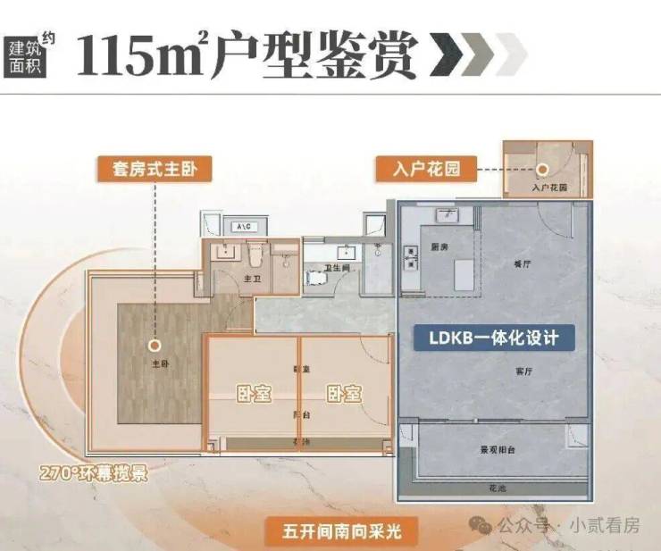 傲璟的高低分区设计,大户型全南向,能占据更广阔无遮挡的视野。且只需上下楼便能独享空中会所,恰到好处地提供了“既要又要还要”的高阶改善氛围。如建面约115㎡,五开间朝南,可最大尺度拦景入室,若想静静眺望园景或城市景观,上楼便是私家花园。
