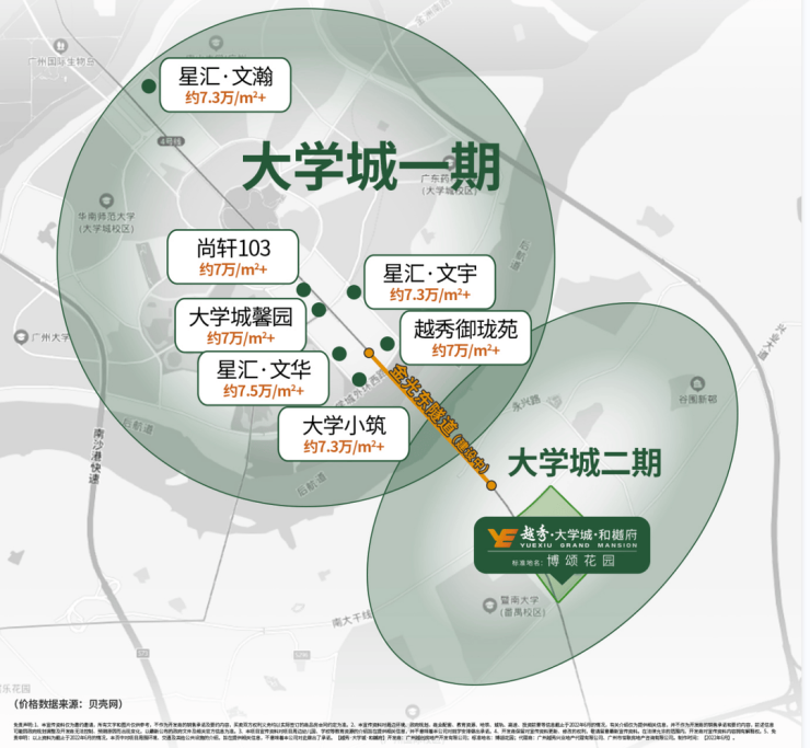 6,与大学城一期二手房价格倒挂,大学城一期产学研人才汇聚,目前二手7万+/㎡达到了番禺二手房价天花板,10年涨幅超200%!
