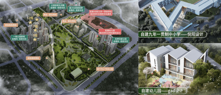 配建一所48班的九年一贯制学校,已经于2023年9月,正式与“番广实验教育集团”签约,2025年9月已开学,加上配建的6班幼儿园,小区业主可享受12年学龄都在小区里的优势,穿过中央公园即达校园(约400米);