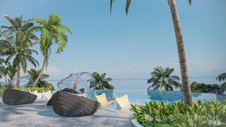 北纬18°黄金度假纬度 | 项目离海直线距离约200米 | 项目最高约130米高涯瞰海 |无边海涯泳池 | 约0.28容积率低密院落