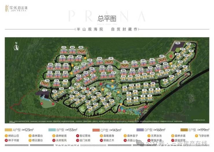 项目因地制宜采用退台式设计,结合山地高差阶梯铺排创新院落,有天有地有景,容积率仅约0.28,产品规划为建筑面积约123-199㎡海涯院落,以纯粹低密之境,重新定义海涯院落的边界。