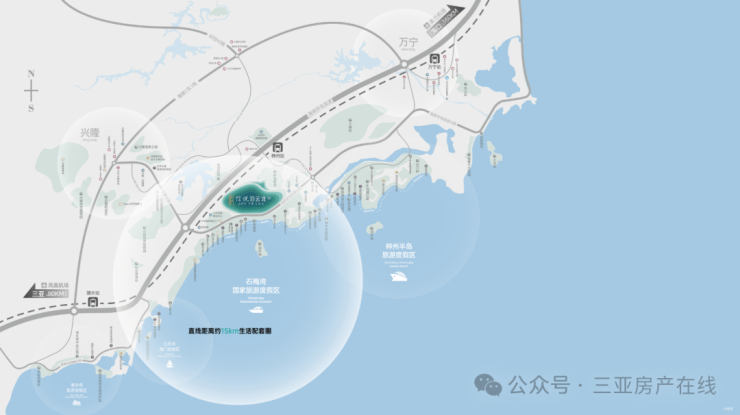毗邻高铁神州站、万宁站,畅享便捷生活圈,速通博鳌机场、三亚凤凰机场、海口美兰机场;接驳环岛高速、环岛旅游公路,多维出行体验,繁华自然随心所享。