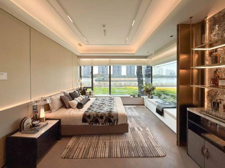 195㎡大四房户型,阳台长度做到约8米,整个LDK客餐厅面积约达到70+平,两侧观江面加起来更长达约16米!不夸张的说,整个LDK空间感堪比酒店的江景宴会厅!