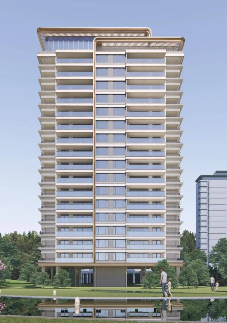塔楼主体墙身使用银灰色的铝板幕墙加玻璃窗,对晾衣、空调外机、管线等的采用格栅等隐蔽处理,实现建筑表皮轻盈整洁,富有律动和光泽感,充分照顾城市景观,使功能与造型有机结合在一起。