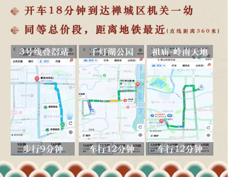 自驾——毗邻佛山文华北路、文昌路、佛平路,实现佛山半小时主城区生活圈;快速连接海五路、海八路和广佛广佛高速,半小时可回到广州老城区;