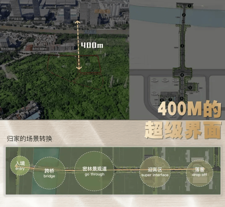 琶洲会展区过桥到项目,直线400米的距离,统一规划界面和景观。