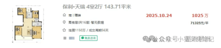 已成交的两套二手房中,143㎡四房单价 7.1 万 /㎡,虽较 2023 年开盘价不算大跌,但议价空间已明显扩大。