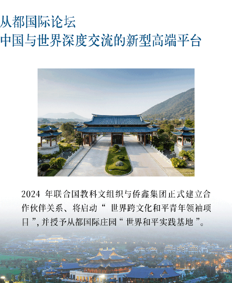 在2024年,联合国教科文组织与侨鑫集团正式建立合作伙伴关系,更授予从都国际庄园“世界和平实践基地”的殊荣。