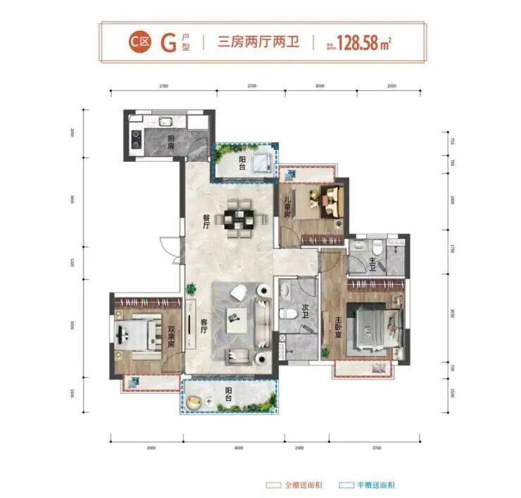 🔹共享空间,厨餐客阳台一体,阖家欢喜满堂