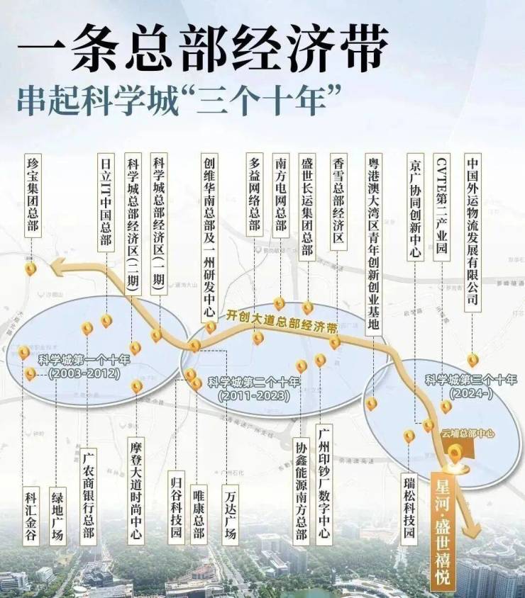 沿着一条开创大道,周边5公里范围内汇集萝岗万达、星际云汇、香雪城在建等约300万方醇熟商业。
